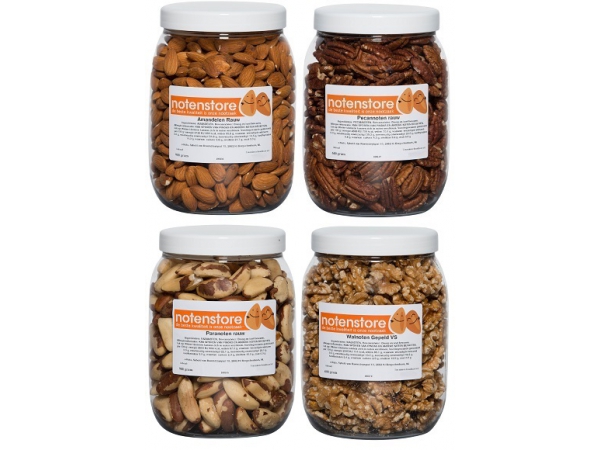 De producten zitten verpakt in hersluitbare potten, makkelijk op te bergen in de voorraad kast. Wij raden u aan de potten te bewaren op een donkere plaats, op kamertemperatuur. Let op: Noten zijn overgevoelig voor vocht, dus niet op een vochtige plek bewaren!